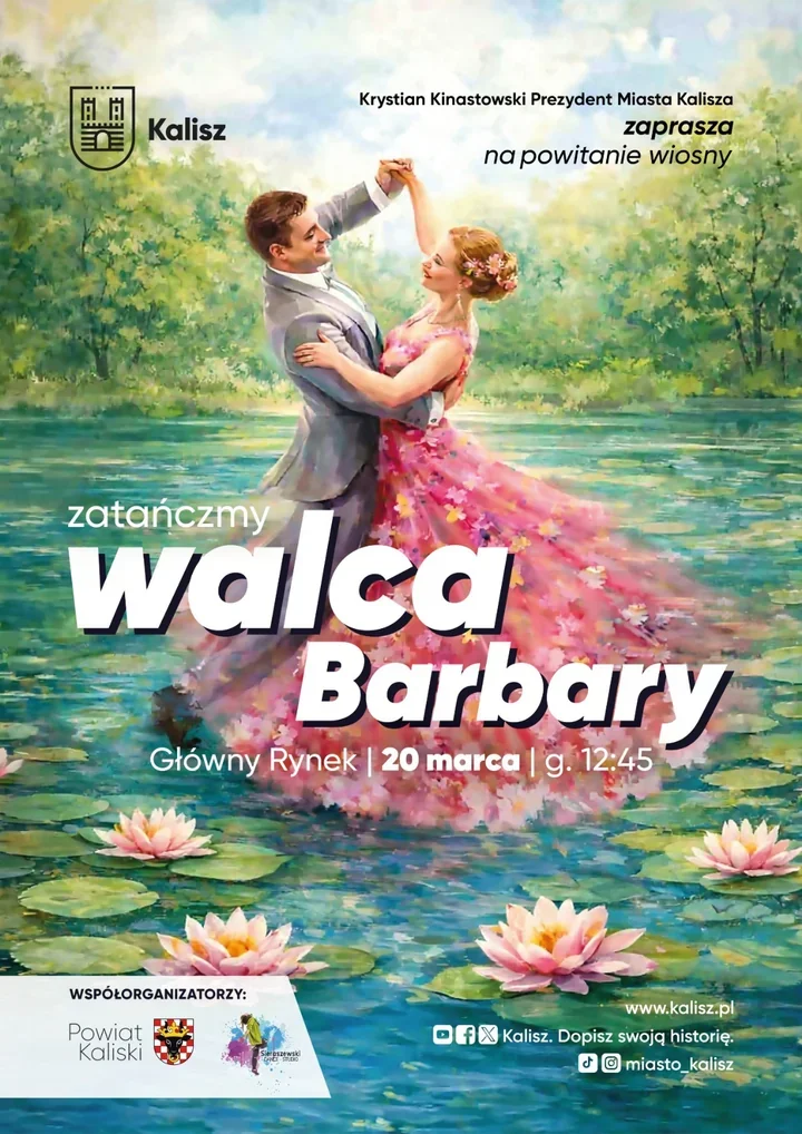 Wspólne powitanie wiosny organizują Miasto Kalisz, Powiat Kaliski oraz Sieraszewski Dance Studio. Przed główną sceną na Głównym Rynku pojawią się chóry, zespoły taneczne i orkiestra – zaplanowano krótki instruktaż, a potem wspólne zatańczenie jednego z najbardziej rozpoznawalnych motywów polskiej kinematografii. Uczestnictwo nie wymaga doświadczenia tanecznego – wystarczą wygodne buty i chęć do zabawy.