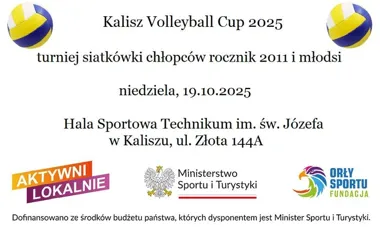 Realizacja serii turniejów obejmujących m.in. Kalisz Volleyball Cup 2025 jest dofinansowana ze środków budżetu państwa przez Ministerstwo Sportu i Turystyki w ramach programu “Sport dla każdego w 2025 r.”. Operatorem programu “Aktywni Lokalnie” jest Fundacja Orły Sportu.